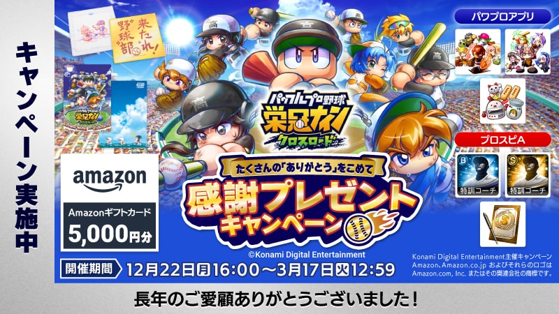 「パワプロ 栄冠クロス」サービス終了と感謝プレゼントキャンペーン開催のお知らせ