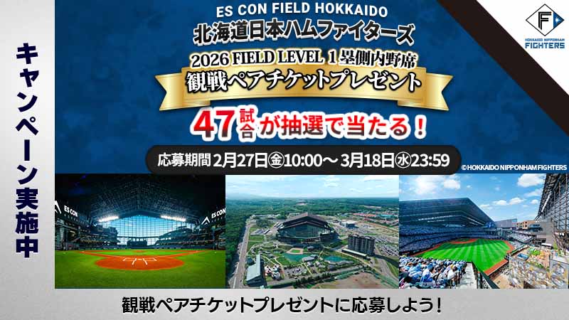 北海道日本ハムファイターズ観戦ペアチケットプレゼントキャンペーン開催中!