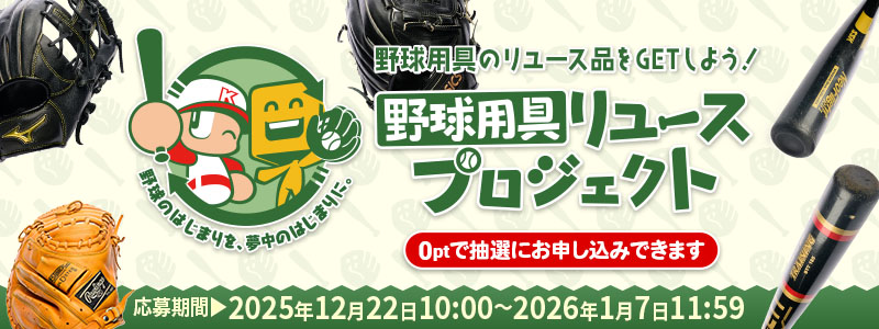 ご寄付で集まりました野球用具リユース品の抽選は、0ptでご応募いただけます!