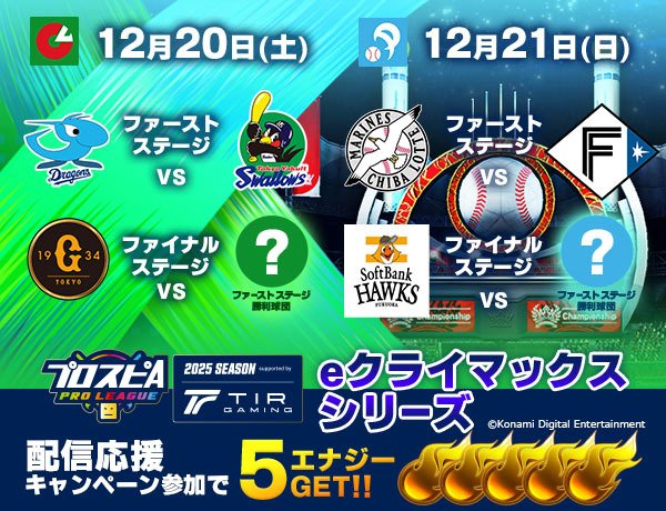 「eクライマックスシリーズ」配信開始! アプリから配信応援キャンペーンに参加して5エナジーをGETしよう!
