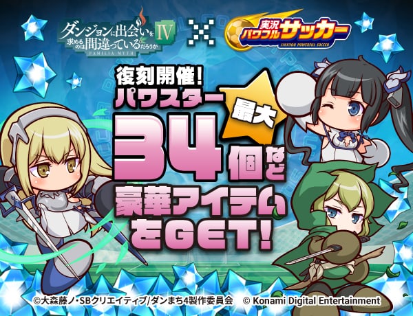 『実況パワフルサッカー』(以下、パワサカ)にて、『ダンジョンに出会いを求めるのは間違っているだろうかⅣ』 (以下、「ダンまちⅣ」)とのコラボを本日7月10日(月)から復刻開催いたしました。