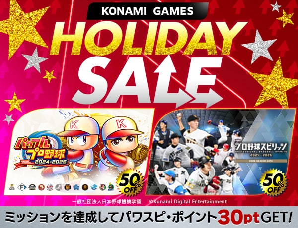 【ミッション達成でパワスピ・ポイント30pt!】KONAMI 「HOLIDAY SALE」 開催中!『パワフルプロ野球2024-2025』、『プロ野球スピリッツ2024-2025』が50%オフ!