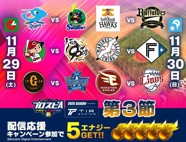 「eペナントレース第3節」配信開始! アプリから配信応援キャンペーンに参加して5エナジーをGETしよう!