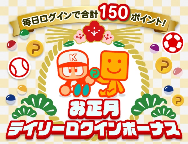 お正月の3日間に毎日ログインいただくと、「パワスピ・ポイント(共通)」をデイリーで50pt、合計150ptをプレゼントします♪